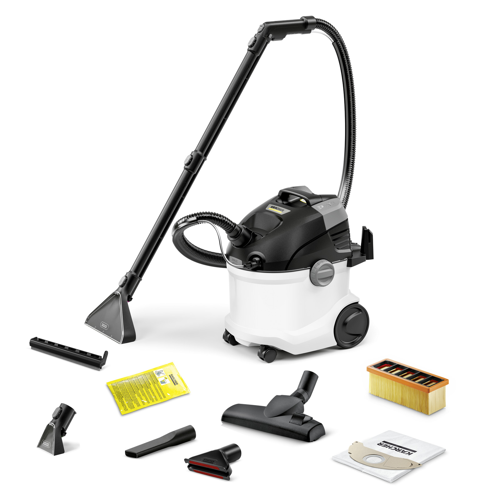 Syväpuhdistava vaikutus yhdistettynä ergonomiseen muotoiluun ja monikäyttöisyyteen: SE 5 -tekstiilipesurin käytännöllinen muotoilu takaa hygieenisen puhdistuksen monille tekstiilipinnoille, kuten matoille, verhoilulle ja pehmustetuille huonekaluille, patjoille ja auton istuimille. Kärcherin testattu painehuuhteluteknologia tarjoaa parhaat puhdistustulokset: raikas vesijohtovesi ja Kärcher Carpet Cleaner RM 519 suihkutetaan syvälle tekstiilikuituihin paineen alaisena ja imuroidaan sitten takaisin yhdessä irronneen lian kanssa – ihanteellinen perheille, allergikoille ja kotitalouksille, joissa on lemmikkejä. SE 5 on monitoiminen 3-in-1-tuote, jota voidaan käyttää myös täysimittaisena märkä- kuivaimurina sen laajan lisävarustevalikoiman ansiosta. Muut varusteet: 2-tankkijärjestelmä irrotettavalla puhtaam ja likaisen veden säiliöllä, ergonominen kantokahva helpottaa kuljetusta ja käytännöllinen tarvikkeiden säilytys laitteessa. Käytön jälkeen laite on helppo puhdistaa, mikä takaa tuotteen pitkän käyttöiän.